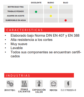 • Resistencia a temperatura de contacto: 250°C